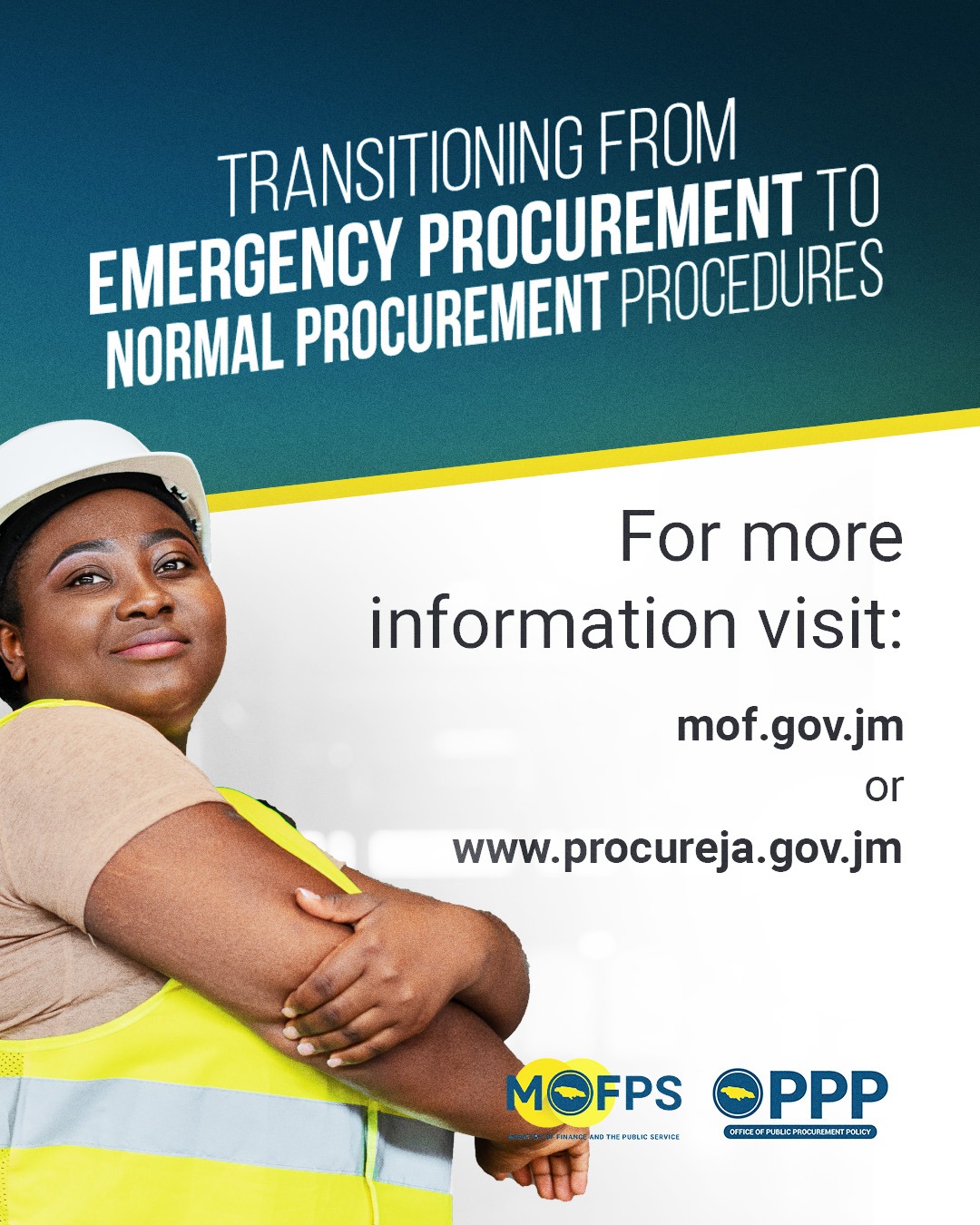 The Office of Public Procurement Policy is established and governed by The Public Procurement Act 2015 and is the Government of Jamaica’s institution responsible for developing and implementing public procurement policies and monitoring the performance of the public procurement system.